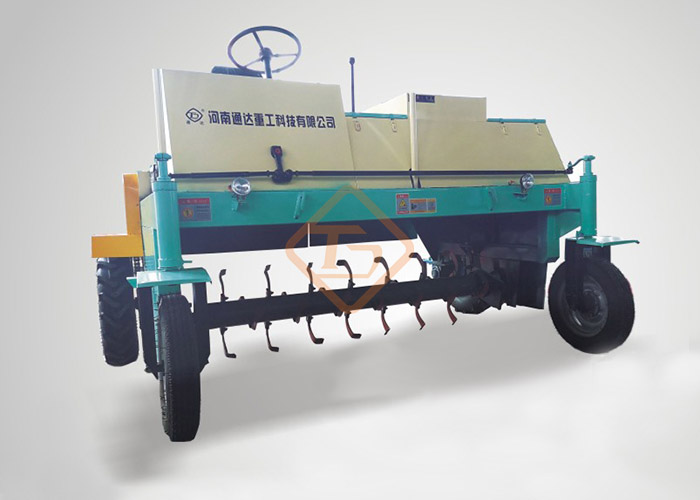 行走式翻拋機(自行式翻拋機)是生產(chǎn)生物有機肥專用成套設(shè)備中的主機,該機采取四輪行走設(shè)計,可前進、倒退、轉(zhuǎn)彎,由一人操控駕駛。行駛中整車騎跨在予先堆置的長條形肥基上,由機架下掛裝的旋轉(zhuǎn)刀軸對肥基原料實施翻拌、蓬松、移堆,車過之后篡成新的條形垛堆。即可在開闊場地,也可在車間大棚中實施作業(yè)。