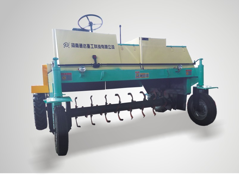 行走式生物有機肥料翻堆設備是生產生物有機肥專用成套設備中的主機,該機采取四輪行走設計,可前進、倒退、轉彎,由一人操控駕駛。行駛中整車騎跨在予先棧置的長條形肥基上,由機架下掛裝的旋轉刀軸對肥基原料實施翻拌、蓬松、移棧,車過之后篡成新的條形垛棧。即可在開闊場地,也可在車間大棚中實施作業。先進的發酵工藝采取的是微生物好樣發酵,根據好樣發酵的原理設計,使發酵菌擁有了充分發揮其功能的空間。