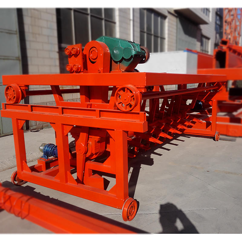 自由跨度深槽發(fā)酵翻拋機在發(fā)酵槽上進行工作,通常采用電機驅動。由于槽式翻拋機滾筒的高速旋轉,滾筒上的刀片對發(fā)酵槽內發(fā)酵物料進行破碎、混合攪拌,同時物料被滾筒向后翻拋并松散堆置。通過電動傳動裝置,翻拋機可以實現(xiàn)滾筒自動升降、轉動。翻拋機通過移行車實現(xiàn)從一個發(fā)酵槽到另一個發(fā)酵槽的移行,多個發(fā)酵槽可以采用一臺槽式翻堆機。