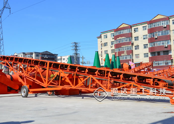 移動(dòng)皮帶輸送機(jī)是一種工效高,使用,機(jī)動(dòng)性好的連續(xù)輸送裝卸設(shè)備。主要用于裝卸地點(diǎn)經(jīng)常變更動(dòng)的場所,如:港口、碼頭、車站、煤場、倉庫、建筑工地、沙石料場、農(nóng)場等,用來短途運(yùn)輸及裝卸散料或單件重量100公斤以下的成件物品