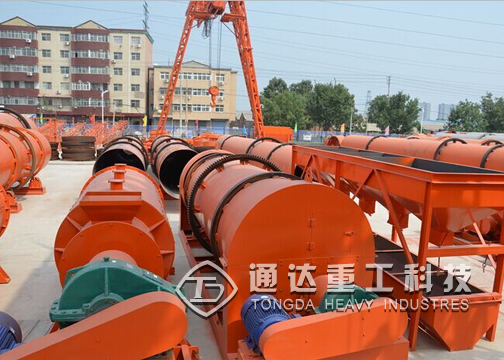 通達重工新研發的有機肥轉鼓攪齒兩用造粒機轉鼓造粒機是一種可將物料制造成特定形狀的成型機械。轉鼓造粒機是復合肥行業的關鍵設備,適用于冷、熱造粒以及高、中低濃度復混肥的大規模生產。主要工作方式為團粒濕法造粒,通過一定量的水或蒸汽,使基礎肥料在筒體內調濕后充分化學反應,在一定的液相條件下,借助筒體的旋轉運動,使物料粒子間產生擠壓力團聚成球。該機筒體采用特殊的橡膠板內襯或耐酸不銹鋼襯板,實現了自動除疤、脫瘤,取消了傳統的刮刀裝置。該機具有成球強度高、外觀質量好、耐腐蝕、耐磨損、能耗低、使用壽命長、操作維修方便等特點。濕法攪齒造粒機利用高速回轉的機械攪拌力及由此產生的空氣動力,使細粉狀料在機內連續實現混合,成粒、球化、致密等過程,從而達到造粒的目的。此兩種造粒方式的結合使得所造顆粒成球率更高,顆粒更加美觀,同時節省能源。